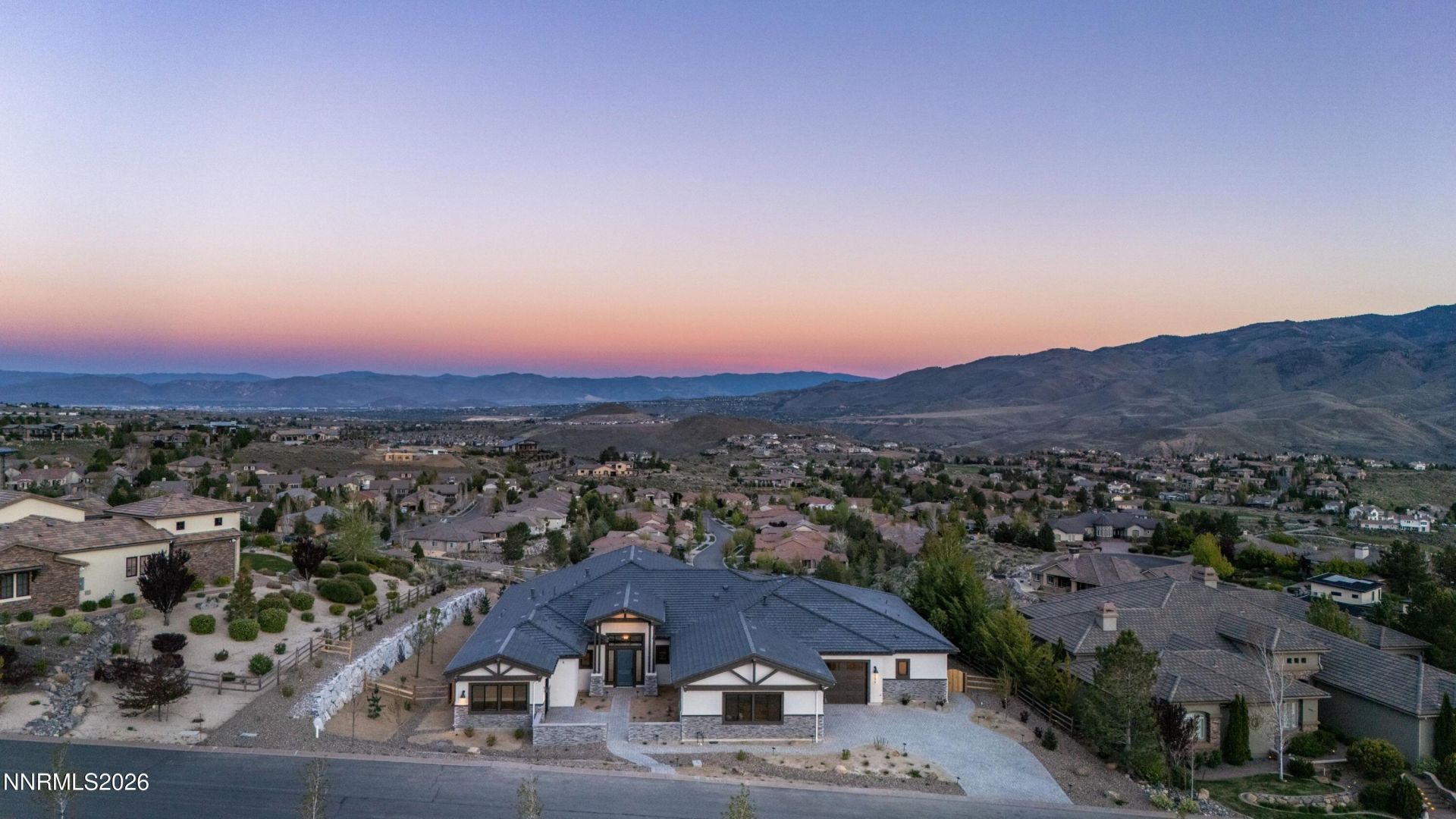 From the moment you cross the threshold, a sense of scale and serenity unfolds, drawing your gaze toward sweeping, uninterrupted views. Perched atop a scenic ridge within the exclusive Eagle Chase enclave of Somersett, this remarkable residence captures panoramic vistas spanning the Somersett Valley to the lights of Downtown Reno. Encompassing approximately 4,771 square feet, the home has been thoughtfully designed to balance grandeur with livability, offering four bedrooms and four-and-a-half baths. The primary suite, privately positioned on the eastern wing, serves as a tranquil retreat. Complete with a wet bar, intimate sitting area, and direct access to a covered patio, it invites quiet moments overlooking the expansive landscape. The spa-inspired bath is a study in refinement, featuring an oversized walk-in shower with seamless glass enclosure, dual vanities, and a sculptural soaking tub set beside a striking double-sided fireplace. Beyond, a bespoke dressing room leads to a private laundry suite-one of two within the home-appointed with premium appliances. The western wing hosts three generously proportioned guest suites, each with its own beautifully finished en-suite bath, showcasing floor-to-ceiling tile work and frameless glass showers. At the heart of the home, the great room is both dramatic and inviting. A linear fireplace framed by floor-to-ceiling stone creates a stunning focal point, while a four-panel sliding glass wall dissolves the boundary between indoors and out. The result is a seamless transition to a vaulted, covered patio-an extraordinary setting for entertaining or simply taking in nearly 180-degree views of the valley and city beyond. The kitchen is a masterclass in design and function. Anchored by a grand center island, it features curated finishes, designer appliances, and custom two-tone cabinetry accented with refined hardware. Just beyond, a fully appointed butler's kitchen elevates the home's entertaining capacity, offering dual ovens, an additional full-size refrigerator, dishwasher, and a built-in ice machine-ensuring effortless hosting on any scale. Additional amenities further enhance the home's thoughtful design, including a well-equipped mudroom with a dog wash station, a generous walk-in pantry, a second laundry room, and dedicated office and fitness spaces. Completing the property is an expansive 1,500+ square foot garage, offering ample room for multiple vehicles, storage, or a custom workshop. This custom-built residence is a compelling expression of luxury, comfort, and lifestyle-an exceptional opportunity to experience elevated living in Northern Nevada. An inaugural offering from Sierra Vista Builders, this home sets a new standard for refined design in Reno.